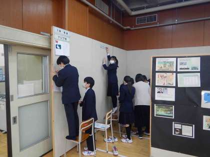 学年末考査が終わり、明日からの学芸発表会展示部門の準備を行いました。