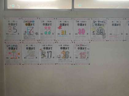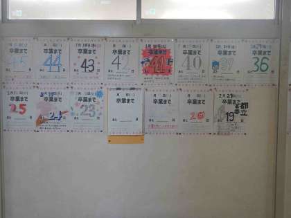 カウントダウン 公開日 2024/02/29 更新日 2024/02/29 できごと 3年生の教室前廊下に「卒業式まで〇日」の日めくりカレンダーが貼ってあります。 今日2月29日には「あと14日」となっています。残りの日々を大切に過ごしてほしいですね。 いいね(0)