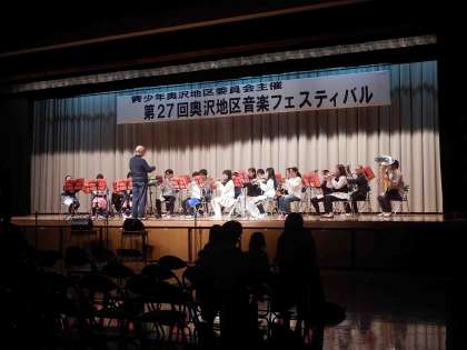 司会は本校の生徒が務め、演奏のスタートは本校の吹奏楽部でした。続いて地域の吹奏クラブや卒業生による演奏、奥沢小学校の合唱、ダンスの発表など様々なジャンルの発表が行われました。