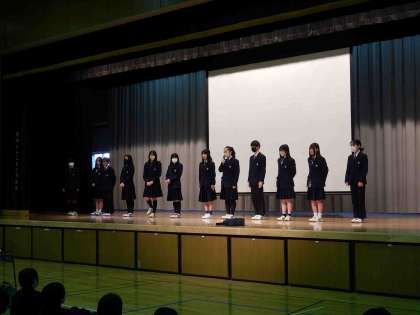 生徒会朝礼 公開日 2024/03/11 更新日 2024/03/11 できごと 後期最後の生徒会朝礼でした。それぞれの委員会からの報告の後、最後には、生徒会本部役員と各委員会の委員長からのあいさつがありました。 いいね(0)