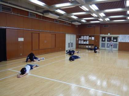 昨日の3年生の球技大会の様子です。外が雨のため、男子は体育館、女子は格技室での様子です。
