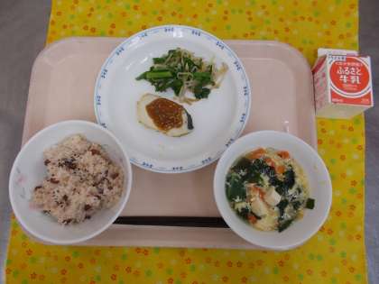 今日は卒業・進級をお祝いする赤飯です。魚へんに春と書くさわらと旬の菜花を組み合わせました。菜花は食べなれていないのと苦みが感じられたのか、やや残ってしまいました。来週月曜日はセレクト給食を実施します。
