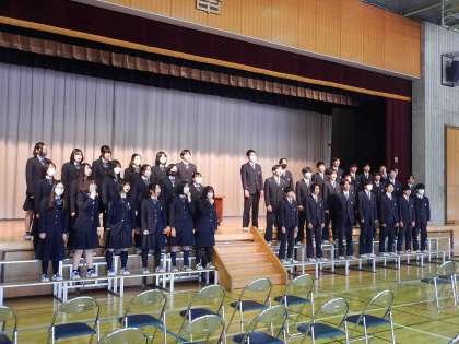 3年生の式練習の様子です。全校合唱と学年合唱の曲を練習しています。