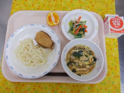 ・かきたまうどん ・牛乳 ・ぼたもち