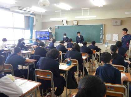 2年生の教室では、担当生徒が各委員会の活動について説明をしていました。