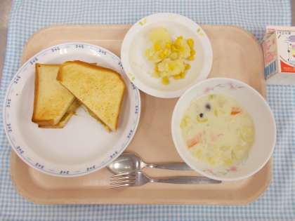 ・春キャベツのクリーム煮 ・コーンポテト です。