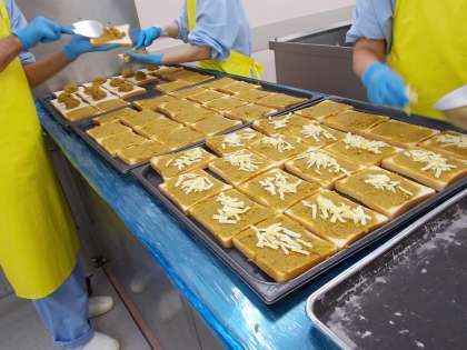 ドライカレーサンドは、カレーとチーズをのせたパンに から焼きしたパンを組み合わせて作っています。鉄分を摂取するため少しレバーをいれましたが、カレー粉のおかげで臭みをほとんど感じない仕上がりとなりました。