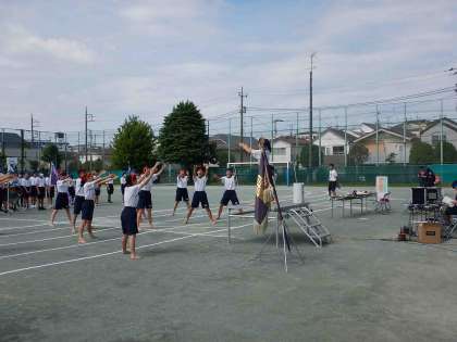 本日は体育祭の予行が行われました。 写真は、入場行進と「若い力」を歌う様子です。
