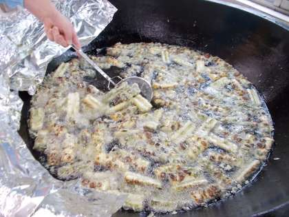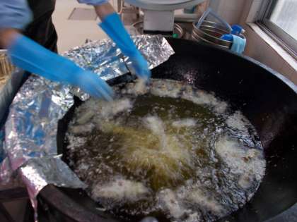 ちくわの天ぷらは、ちくわを1本ずつ油の中にいれ、丁寧に揚げました。
