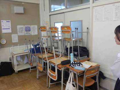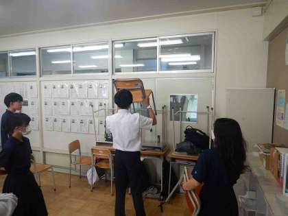 不審者が校内に入ってきた際のバリケード作成の訓練を行いました。