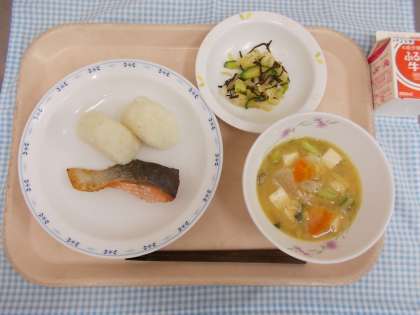 ・牛乳 ★塩むすび ・鮭の塩焼き