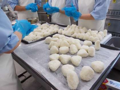 約420個のおにぎりを 調理員さんがひとつひとつ、心を込めて握ってくれました。