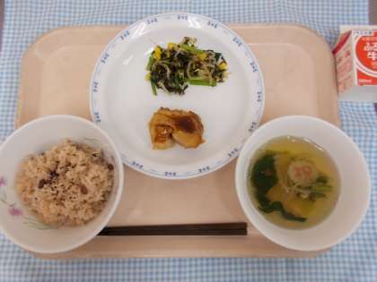 ・牛乳 ・赤飯 ・鶏肉の照り焼き