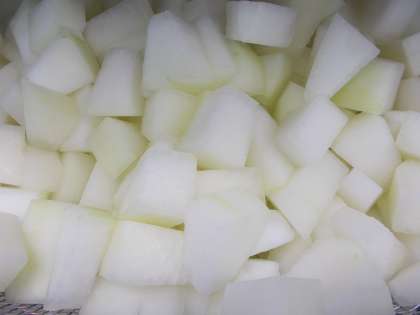 主菜は鶏肉と冬瓜の煮物です。冬瓜は「冬」という字が入りますが、夏が旬の野菜です(冷暗所に保存すると冬まで食べられることから名づけられたそうです)。水分が出てしまい汁物のようになってしまいましたが、よく食べてくれました。