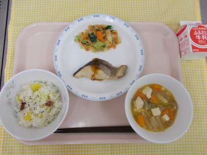 ・牛乳 ・さつまいもごはん ・鮭の照り焼き