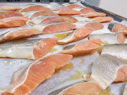 主菜は北海道産の秋鮭です。オーブンで焼いて、照り焼きのたれをかけました。