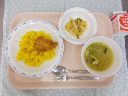 タンドリーチキンは、ヨーグルトの代わりにマヨネーズをいれて作った奥中オリジナルのレシピです。ごはんの進む味つけで、なんと残菜は0でした!