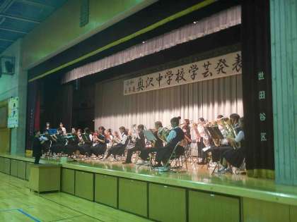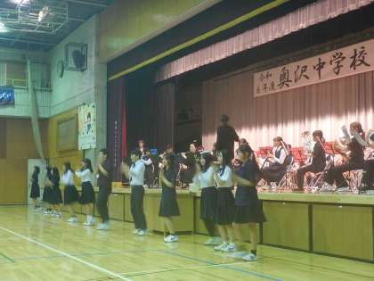 午後の部では、吹奏楽部の発表に続いて、地区吹奏楽クラブの皆さんとの合同演奏がありました。途中からは、生徒や先生方もダンスで参加する場面もありました。