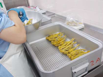 主菜はししゃものカレー揚げです。ししゃもが苦手な人でも食べやすいよう衣にカレー粉を入れてみました。普段は残りがちなししゃもですが、今日はほぼ完食!よく食べてくれました。