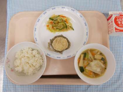 ・麦ごはん ・牛乳 ・珍珠丸子(チンジュワンズ)