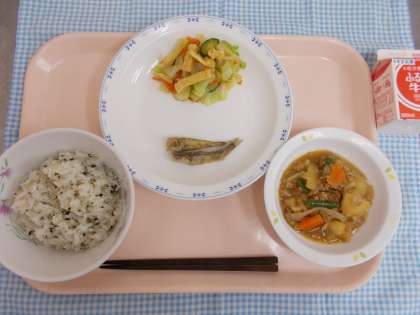 ・牛乳 ・わかめごはん ・メヒカリのから揚げ