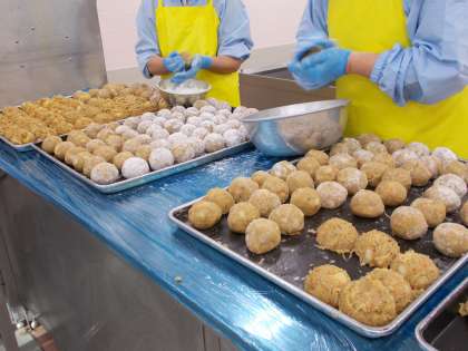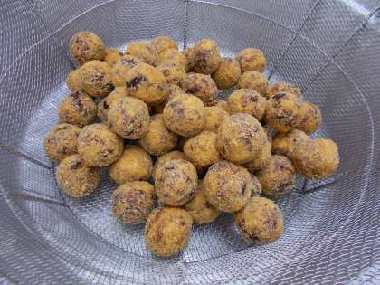 今日は肉じゃがをコロッケにしました。いつものコロッケはマッシャーでなめらかになるまでつぶしますが、今日はじゃがいもがゴロッと入っています。コロコロした具材がはみ出してしまいがちなので、今日はボール型に成型しています。