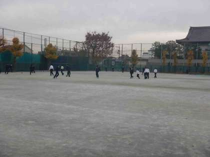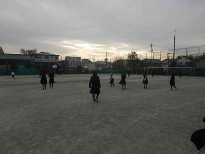 昼休みの校庭の様子です。全面広々と使えるのは今日が最後でした。寒い中、元気に遊んでいました。