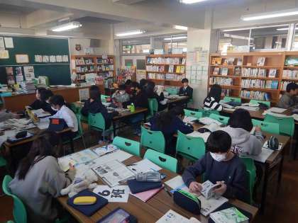 国語では、本の紹介POPを考えてえいました。理科では、各自が自分のペースで課題に取り組んでいました。