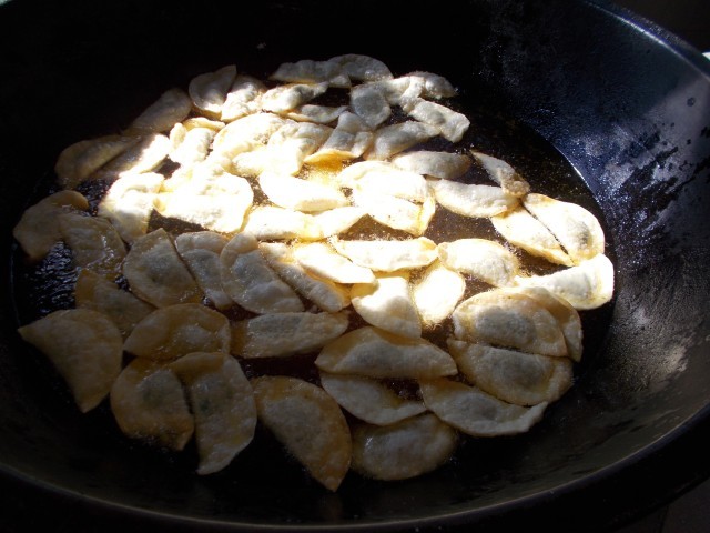 今日は、今年度初めてのジャンボぎょうざでした。給食では直径16センチの大きなぎょうざの皮を使って作りました。