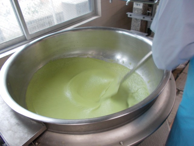 ずんだは、すりつぶした枝豆にさとうと水を合わせ煮詰めて作りました。