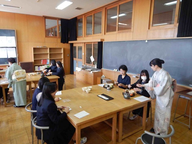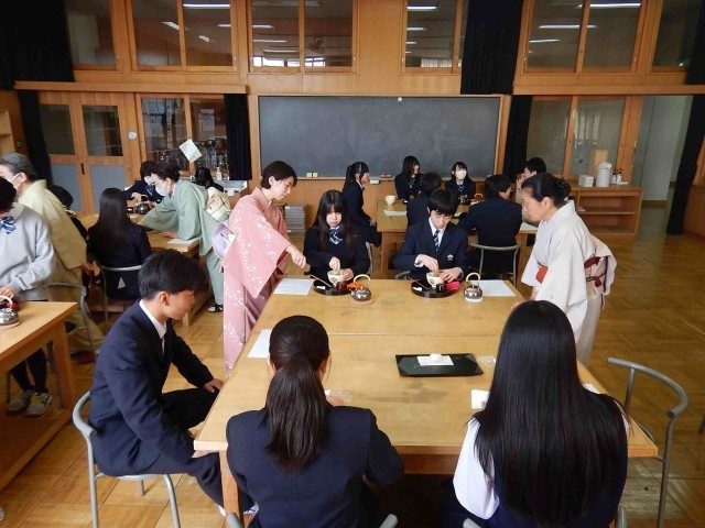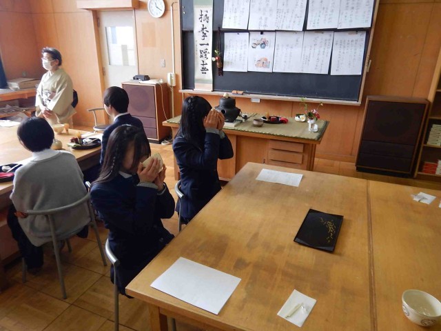 3年生が、茶道の体験をしました。裏千家の作法を教えていただきました。道具の使い方をはじめ、一つ一つの作法の意味、相手に対する気持ちなど、普段とは異なった雰囲気の中で貴重な体験をすることができました。