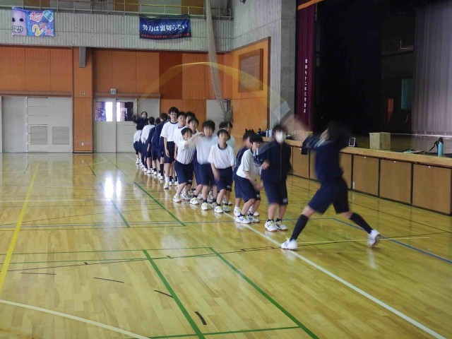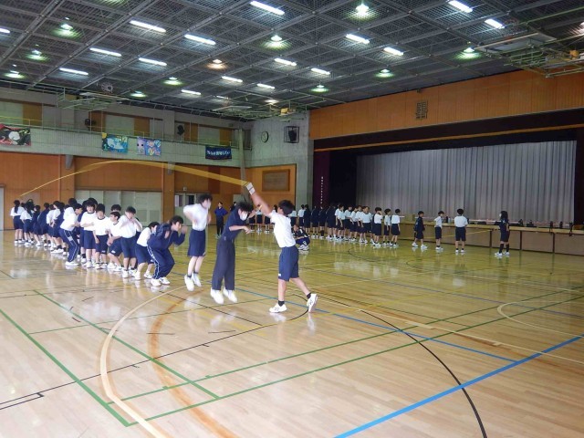 体育祭の学年種目である大繩とびの練習の様子です。