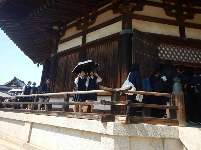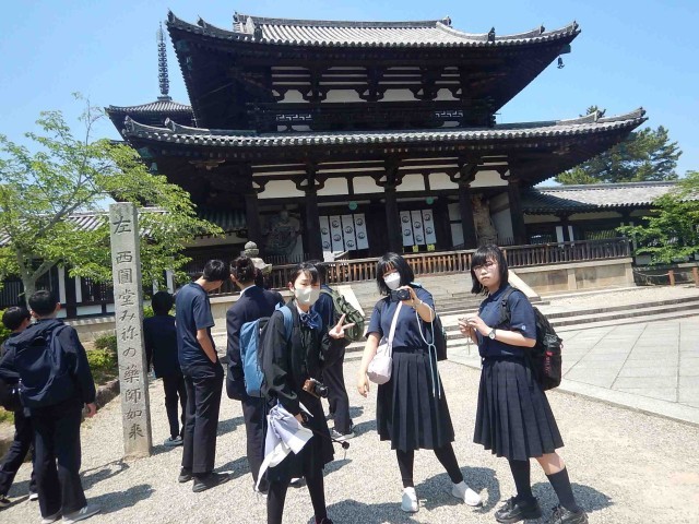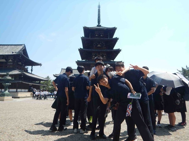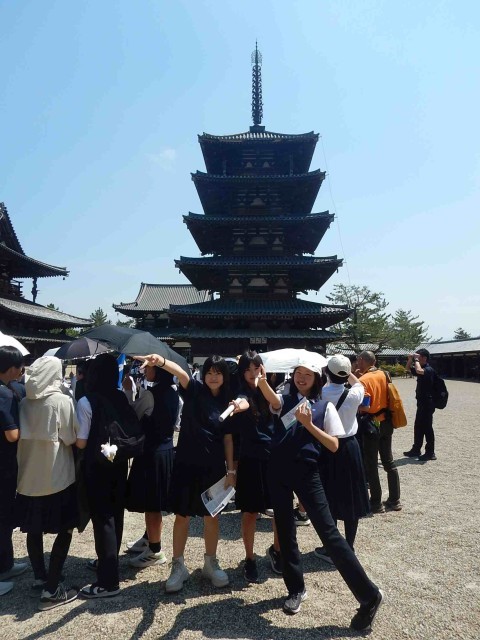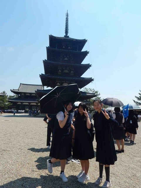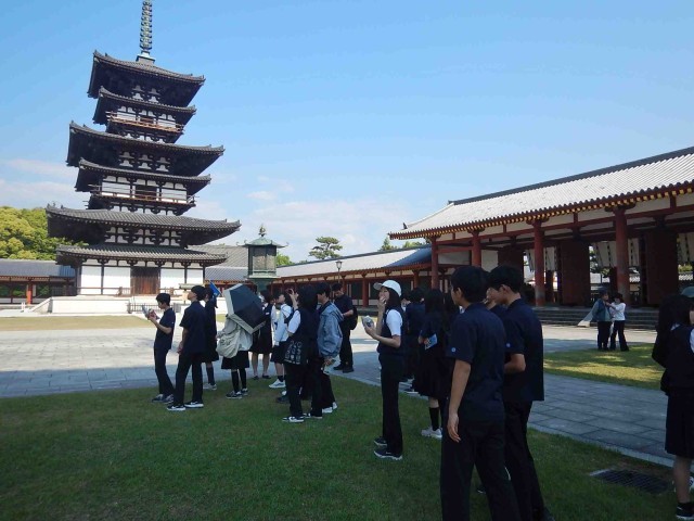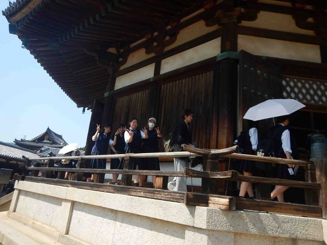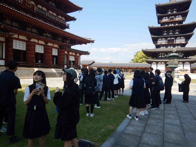 新幹線を新大阪で下車した後、バスで最初に向かったのが法隆寺でした。とても人が多かったです。続いての見学地は薬師寺でした。