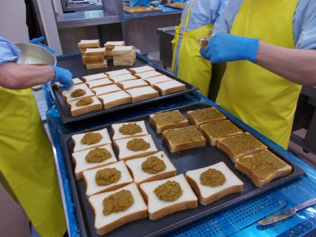 ドライカレートーストは、ドライカレーをのせたパンにチーズをのせて焼いたものです。パンにのせるドライカレーは朝一で作ります。鉄分を摂取するため今日はレバーを入れましたが、カレー粉のおかげでほとんど臭みを感じない仕上がりになりました。