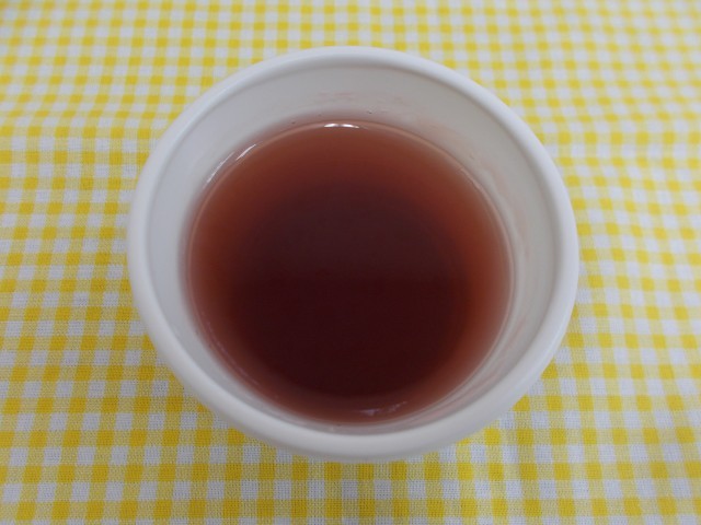 ゼリーも給食室手作りです。粉寒天と水、さとうを合わせて加熱したところに、ぶどうジュースをいれて冷やして作ります。