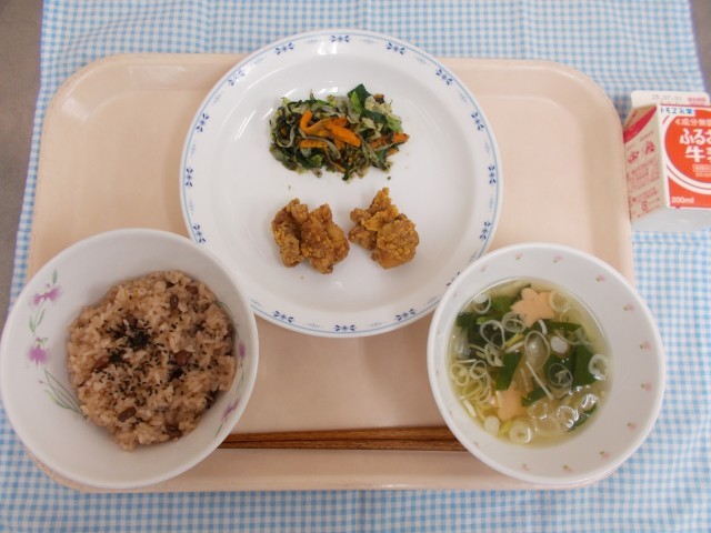 ・牛乳 ・赤飯 ・鶏肉のから揚げ