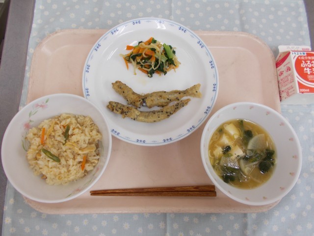 ・牛乳 ・こぎつねごはん ・ししゃもの南部揚げ