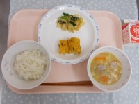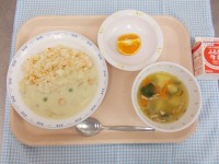 今日の献立は、・牛乳 ・シーフードクリームライス・じゃがいもとベーコンのスープ ...