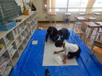 体育祭に向け、クラス旗の作成が始まっています。写真は1年生の様子です。下絵をもと...