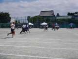 3学年の学年種目の様子です。 2人3脚から人が増えていき、最後はクラス全員で横一...
