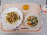今日の献立は、 ・牛乳 ・青椒肉絲丼 ・ワンタンスープ ・冷凍みかん です。 ...