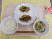 今日の献立は、・牛乳 ・麦ごはん ・いわしのさんが焼き・具だくさんみそ汁 ・揚げ...