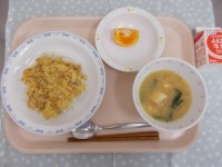 今日の献立は、・牛乳 ・キムチチャーハン・棒ぎょうざ ・ワンタンスープ です。キ...