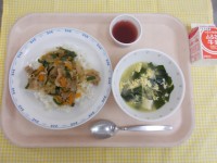 今日の献立は、・牛乳 ・親子丼 ・生揚げのみそ汁 ・カラマンダリン です。今日は...
