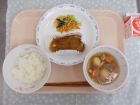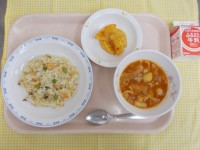今日の献立は、・牛乳 ・シーフードピラフ・ミネストローネ ・スパイシーポテト で...
