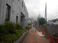 西門から仮設校舎への連絡通路の柱が設置されました。