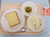 今日の献立は、・牛乳 ・シュガーバタートースト・パプリカサラダ ・鮭のクリームス...