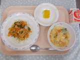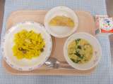 今日の献立は、 ・牛乳 ・ビタミンABC丼 ・トマトと卵のスープ ・蒸しとうも...