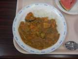 今日の献立は、 ・牛乳 ・夏野菜カレーライス ・じゃこサラダ ・小玉すいか で...