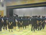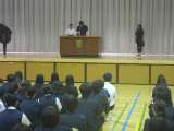 左の写真は、終業式前に校歌の練習をしている様子です。右の写真は「代表生徒の言葉」...